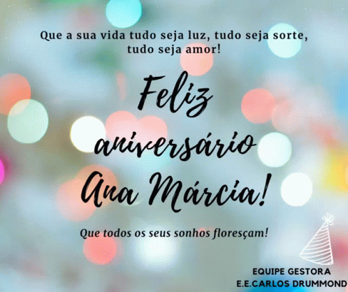 A heartfelt birthday greeting to Ana Márcia from the E.E. Carlos Drummond Management Team, wishing her light, luck, love, and flourishing dreams.