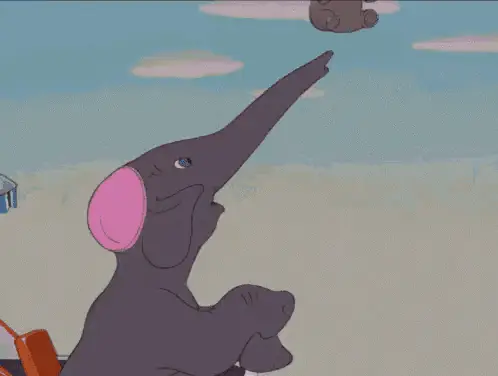 Em The Elephant wishes a Feliz Aniversário with colorful banners and confetti.