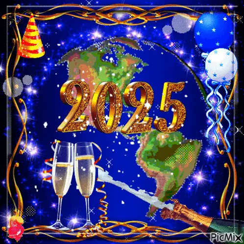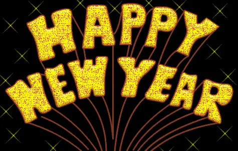 Animated characters dance under dazzling fireworks, celebrating a Happy New Year 2024.