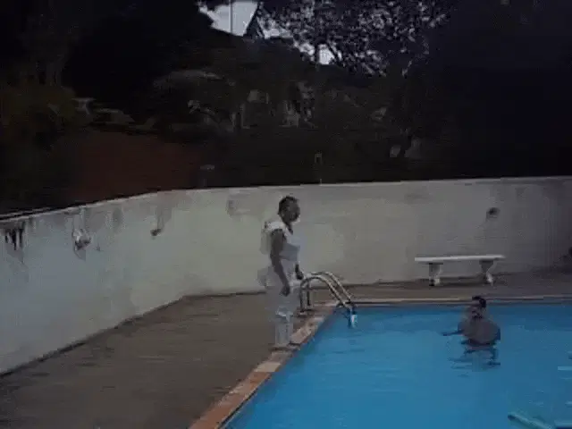 An older woman joyfully dancing in a kitchen, celebrating Grandmothers' Day with an on-screen message.