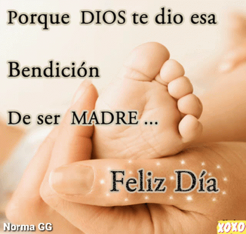 A woman gently holds a baby's foot, with a heartfelt message for Mother's Day in Spanish and English.
