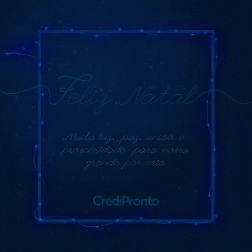 CrediPronto's animated Christmas greeting, wishing 'Feliz Natal' with blue neon lights.