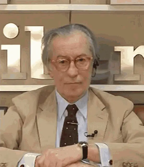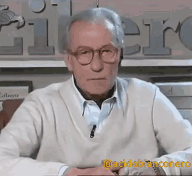Maurizio Crozza impersonating Vittorio Feltri, stating 'It's factual' on the show Fratelli di Crozza.