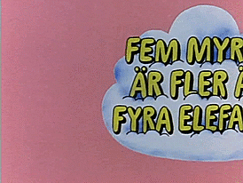 a pink background with yellow letters that say fem myror ar fler a fyra elefan