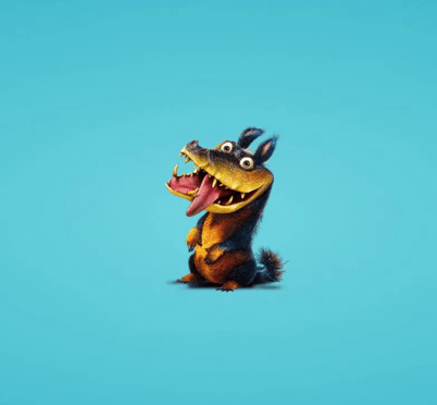 A cute fennec fox lies flat on a soft surface, wagging its tail happily with eyes closed.