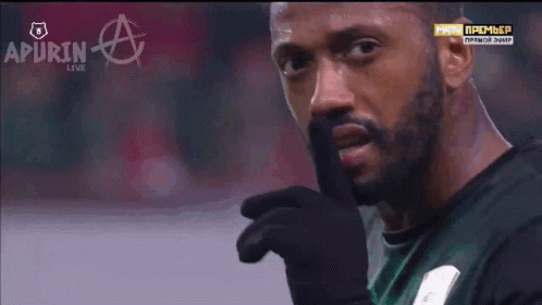 Manuel Fernandes makes a 'shush' gesture, putting a gloved finger to his lips during a football match.