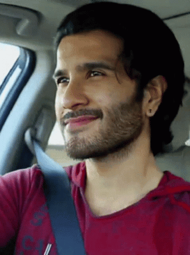 Feroze Khan and Hania Amir share smiles while sitting together in a car.