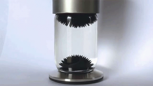 Ferrofluid in a glass jar forms dynamic spikes in response to a hidden magnet, creating a mesmerizing display.