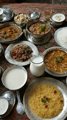 A sumptuous feast laid out for Holi, featuring a variety of colorful dishes and drinks, celebrating the festival of colors.