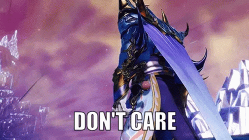 Final Fantasy V's Exdeath character in a dramatic pose with the 'DON'T CARE' meme overlay.