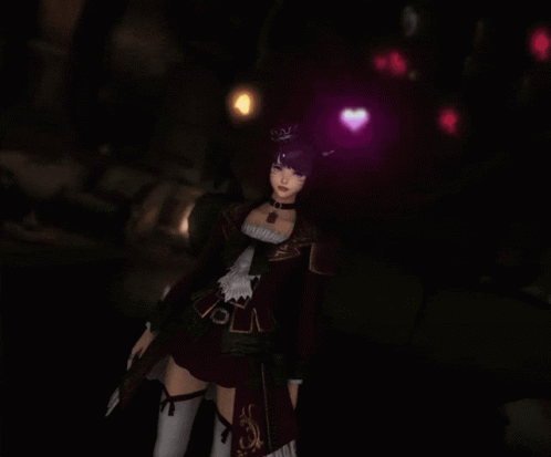 An FFXIV catgirl character blows a kiss, surrounded by glowing pink heart effects.