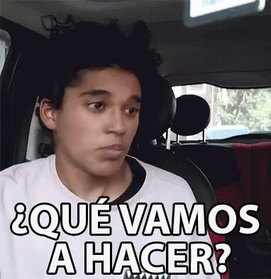 Harold Benny in a car, asking '¿Qué vamos a hacer?' (What are we going to do?) for the weekend party.