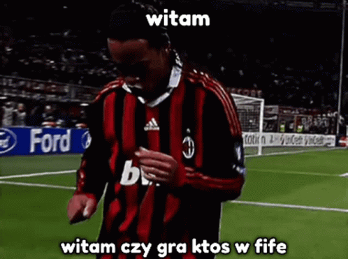 Ronaldinho Gaucho, wearing an AC Milan jersey, greets viewers and asks if anyone plays FIFA.
