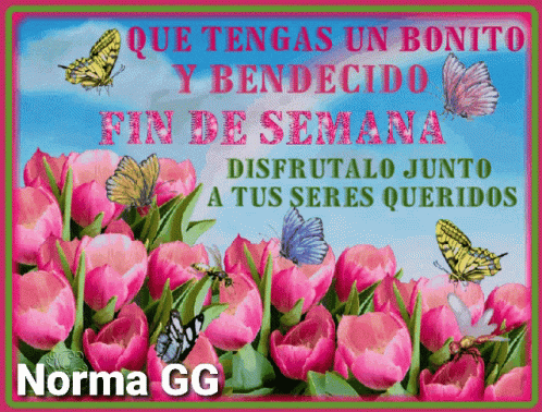 Norma GG shares a beautiful greeting card with pink tulips and butterflies, wishing a blessed weekend to enjoy with loved ones.