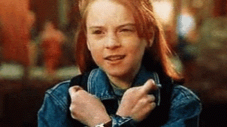 Lindsay Lohan as Hallie Parker or Annie James in The Parent Trap, crossing her fingers for good luck.
