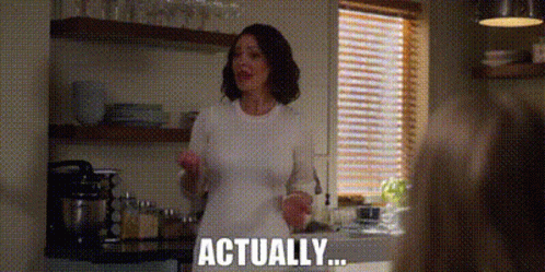 Katherine Heigl as Tully Hart in Firefly Lane, making a point with an 'Actually...' in the kitchen.