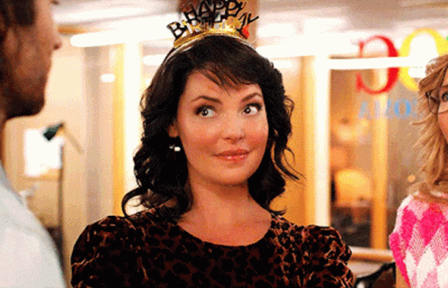 Katherine Heigl as Tully Hart celebrates her birthday in Firefly Lane, wearing a 'Happy Birthday' crown.