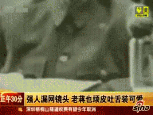 First President of Taiwan, Chiang Kai-shek, caught on camera playfully sticking out his tongue before a press conference.
