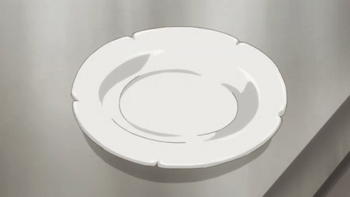 An anime scene showing a rich brown sauce being poured onto a white plate, followed by a piece of fish with ginger placed on top using chopsticks.
