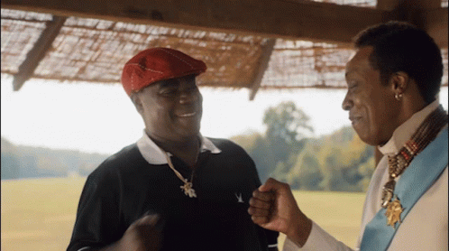 Tracy Morgan as Uncle Reem and Arsenio Hall as Semmi share a friendly fistbump.