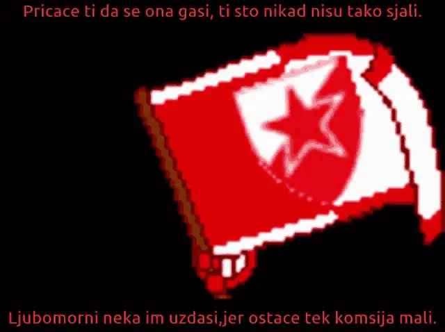 FK Crvena Zvezda Navijaci (fans) cheering passionately in a stadium, raising hands and flags.