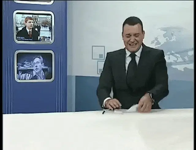 Zeljko Pantic bursts into laughter while sitting at a conference table with FK Partizan branding.