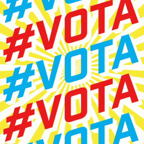 Vibrant graphic by Zachary Stover with flashing light beams and repeated #VOTA text, encouraging people to vote.
