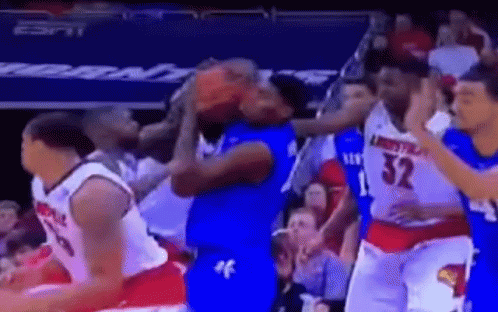 A basketball player dramatically flops to the ground during a game between Kentucky and Louisville.