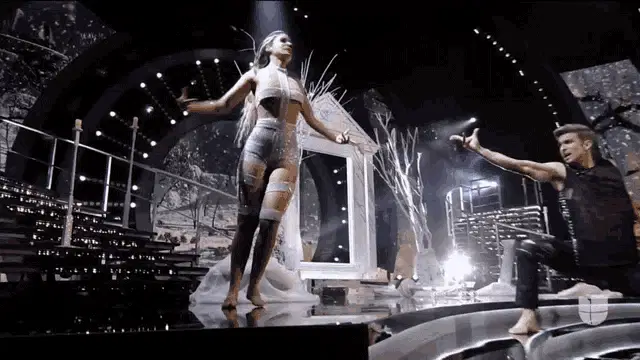Flor Vigna performs an energetic and beautiful dance on stage, showcasing impressive moves and turns.