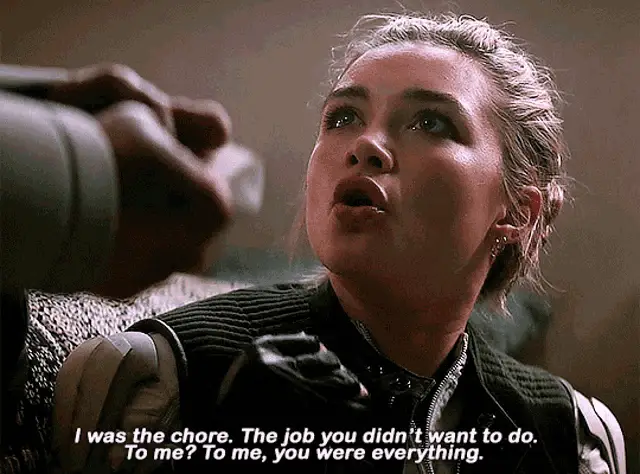 Actress Florence Pugh, known as Yelena Belova, smiles brightly with her blonde hair.