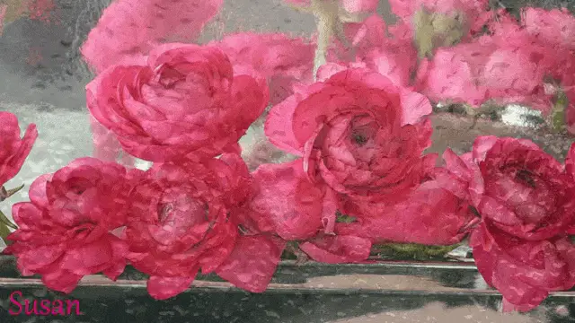 Animated illustration of a vintage typewriter with colorful flowers appearing and disappearing, featuring "Starry Eyes".