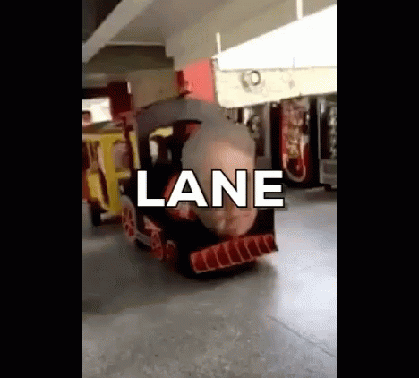 Lane Kiffin's 'Lane Train' ride with fans on a toy train, featuring text overlays 'LANE' and 'TRAIN'.