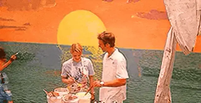 윤픽 (Yoonpic) playing with Korean Flower Playing Cards (Hwatu) while squatting on the floor in a neon yellow Puma sweatshirt.