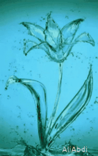 A beautiful flower art piece created entirely from water, with 'AliAbdi' visible as the artist's signature.