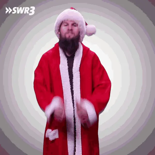 Flula Borg enthusiastically exclaims 'Oh yeah, Glühwein!' while sitting in a bright yellow jacket.