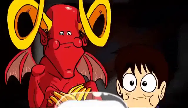 A group of cartoon flies gather around a pile of sugar cubes, with one fly comically jumping on top.