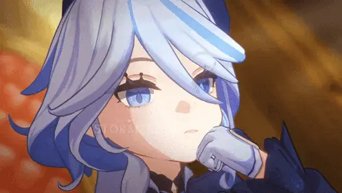 A heart-shaped locket opens to reveal an image of Focalors from Genshin Impact and the text 'baby foca'.