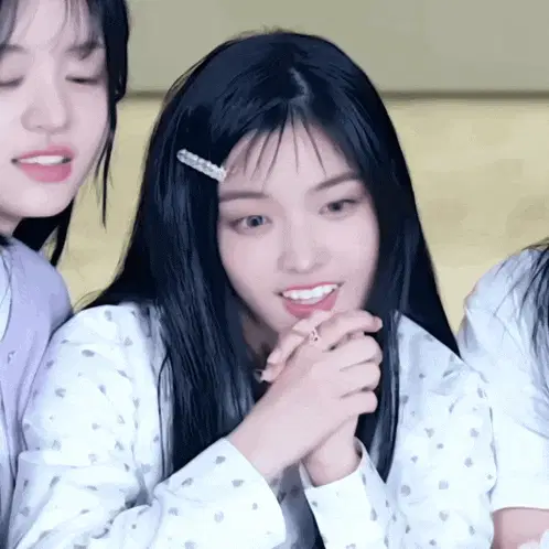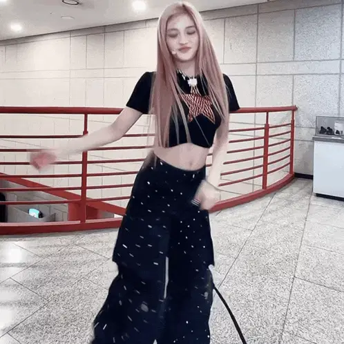 ILLIT Iroha makes a playful salute with a wink, wearing a pink jacket and showcasing her charm.