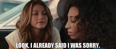 Ariel Moore (Julianne Hough) in Footloose 2011, saying 'Look, I already said I was sorry' to another woman in a car.