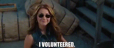 Ariel Moore (Julianne Hough) from Footloose 2011, wearing sunglasses, declares 'I volunteered' with a confident smile.