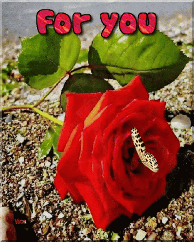 A beautiful red rose with a butterfly resting on its petals, accompanied by the message 'For you'.