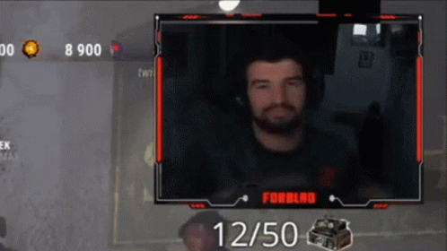 Forblad makes a heart gesture with his hands while streaming a video game, showing a score of 12/50.