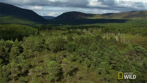 Aerial view of a lush green forest and majestic mountains, featured on Nat Geo Wild.