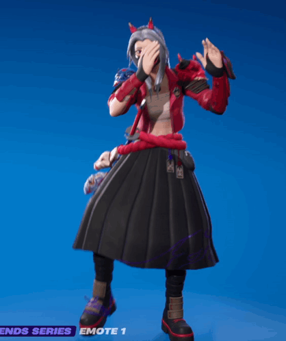 a video game character with a red jacket and black skirt
