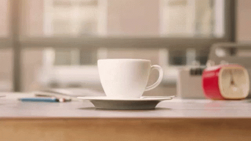 A plain white coffee cup transforms into a Fortune Coffee branded cup with steam rising, on a desk.