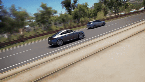An Audi TTS Coupe races through city and scenic roads in the video game Forza Horizon 3.