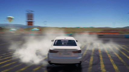 A white Lexus IS 350 F Sport performs impressive drifts and burnouts on a track in Forza Horizon 3.