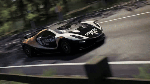 A Spania GTA Spano Duracell Edition supercar races through a forest in Forza Horizon 3.