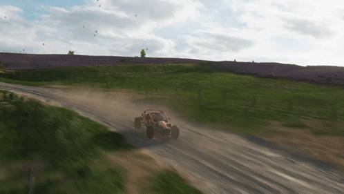 An Ariel Nomad buggy races off-road on a dirt track in the open world of Forza Horizon 4.