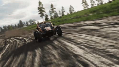 Ariel Nomad off-road driving through muddy terrain and hills in Forza Horizon 4.